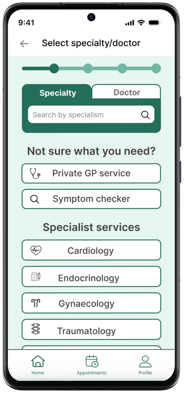 Our team partnered with Creative Navy, a London-based UX/UI design agency, to create a booking system for their client, a private healthcare company.